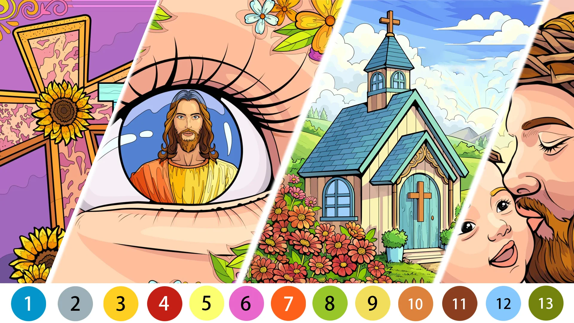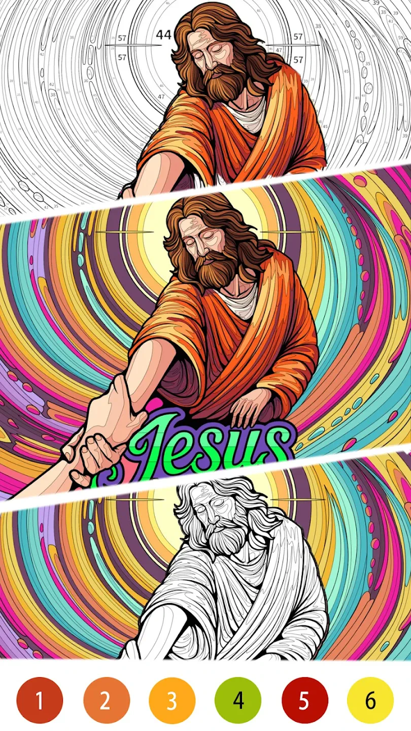 Bible Color Paint By Number is a relaxing puzzle game that combines classic paint-by-number mechanics with inspirational Bible verses. As a genre, it falls into the coloring and puzzle categories, offering a meditative experience with a spiritual twist. Its uniqueness comes from linking each numbered image to Bible verses, making each coloring session a devotional journey.