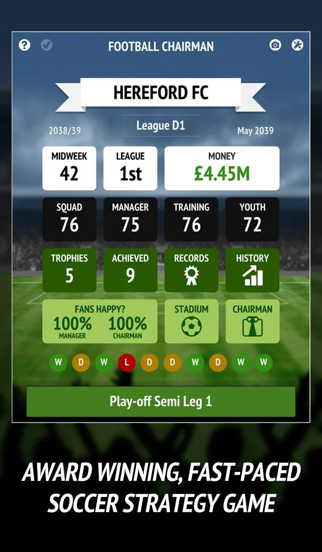 “Football Chairman Pro (Soccer)” is a mobile football management simulation game where players take on the role of a club chairman, making strategic decisions to manage finances, squads, and build their football club to success. It belongs to the sports management simulation genre and is interesting due to its immersive focus on business aspects, player recruitment, and long-term planning within the vibrant world of football.
