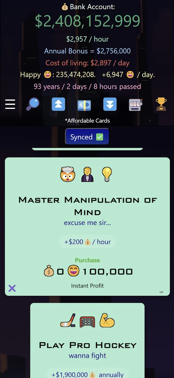 A: Yes, similar to many games, “Idle Trillionaire: Money Game” often offers in-app purchases, typically for the convenience of premium currency. Premium currency can be used to instantly buy assets, speed up certain game processes, or unlock cosmetic enhancements, providing an advantage for those who wish to progress faster without relying solely on passive income.