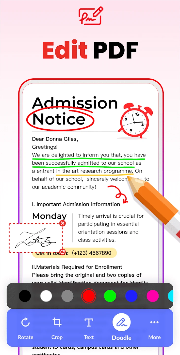 • Image Editing Tools: Crop, rotate, and enhance images before PDF conversion to ensure perfect alignment, remove unwanted edges, or improve readability, including features to adjust brightness and color balance. These editing capabilities allow for clean, professional-looking documents directly within the app without needing external software.