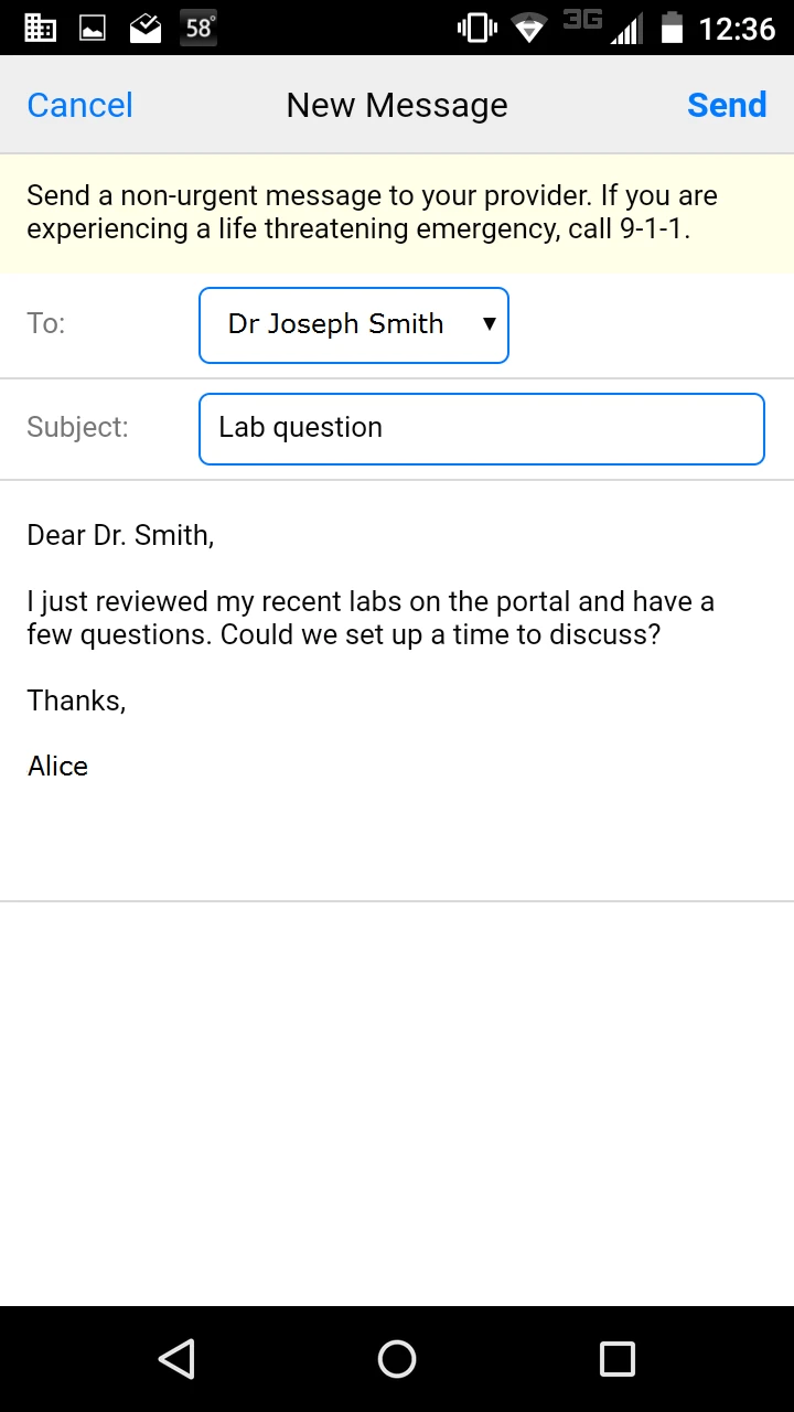 • Secure Message Center: Connect instantly with your entire care team from one place. This feature allows encrypted messaging to physicians, nurses, specialists, and pharmacists, cutting down on phone calls and unnecessary office visits by addressing minor concerns quickly – improving communication efficiency and ensuring more complex issues are promptly flagged for appropriate attention.