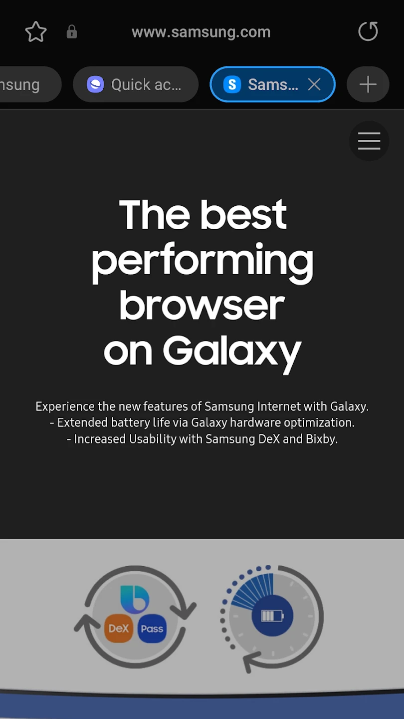 The Samsung Internet Browser is a mobile web browser designed exclusively for Samsung Galaxy devices, offering an optimized web surfing experience directly from your smartphone or tablet. It leverages the power of Samsung DeX to seamlessly transform browsing sessions into desktop-like experiences, and provides robust privacy features like Smart Protection+. This browser is crafted specifically for Samsung users seeking enhanced performance and integrated functionalities on their devices.