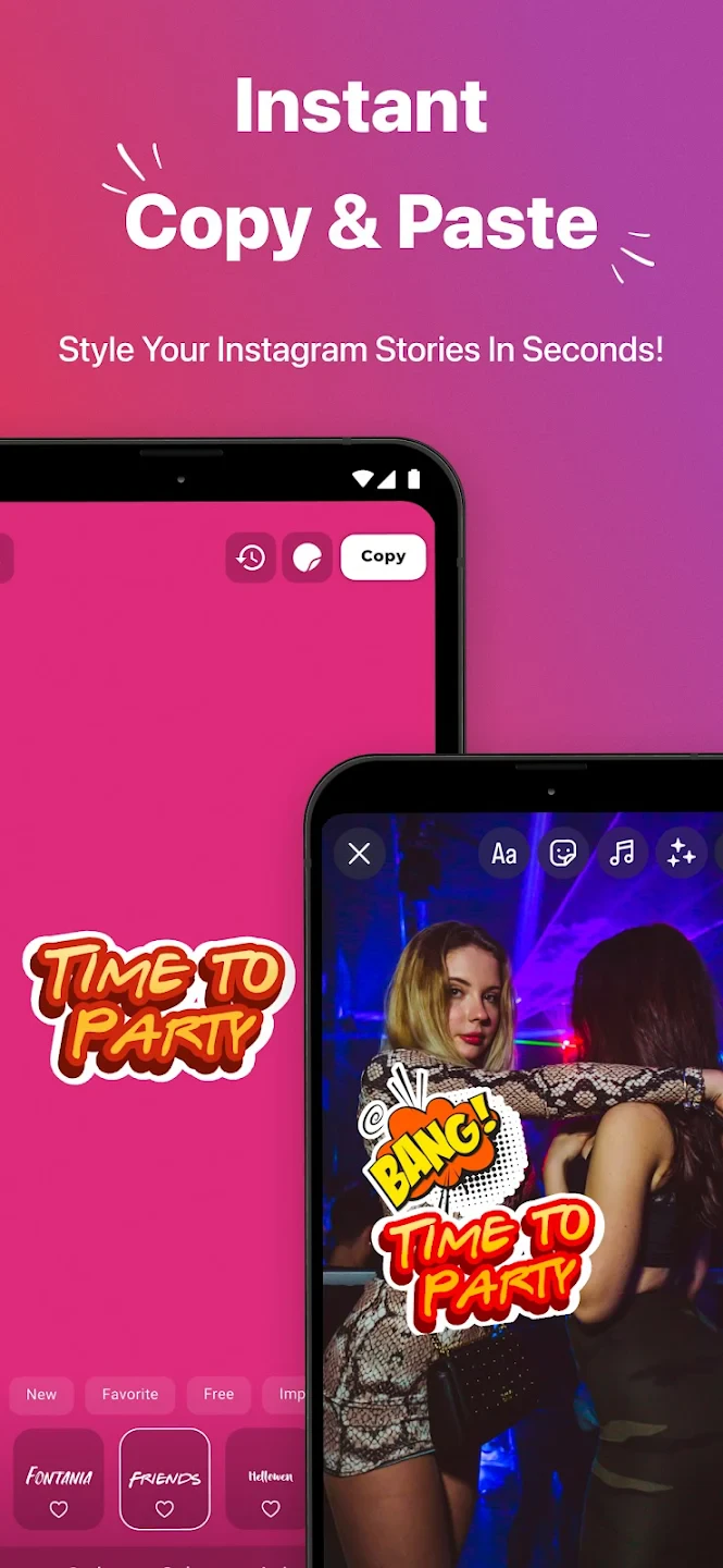 StoryFont for Instagram Story is your essential tool for enhancing the visual appeal of text within your Instagram Stories. It allows you to easily find, preview, and customize text appearances, adding personality and ensuring readability for your audience. Perfect for Instagram users looking to create more engaging and professionally presented content quickly.