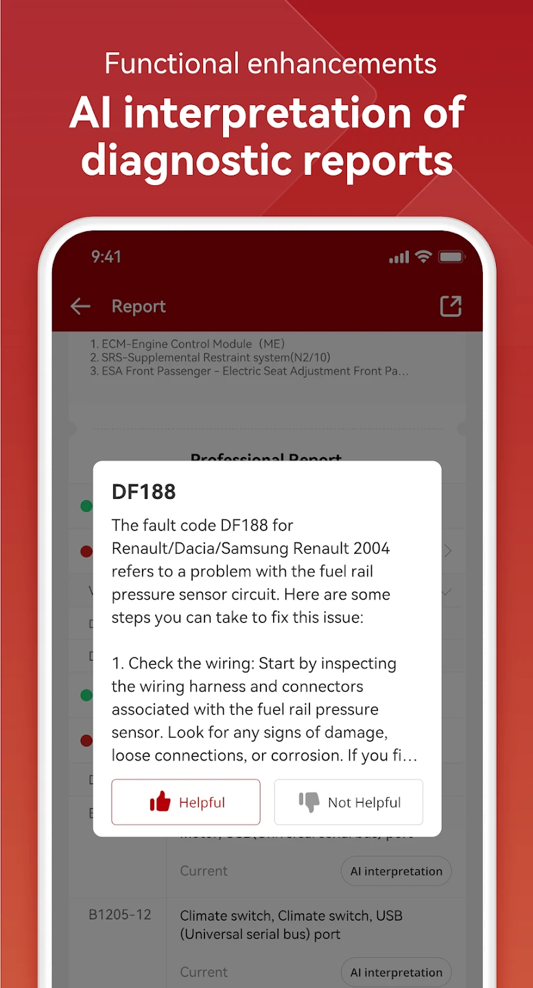 • [Optional: Advanced Mode/Data Logging]: For experienced users, an optional advanced mode might offer detailed access to raw data streams or allow custom data logging configurations for extended monitoring periods. This supports in-depth analysis for performance tuning or diagnosing intermittent faults that only occur under specific driving conditions, adding a layer of sophistication for dedicated enthusiasts and professionals.
