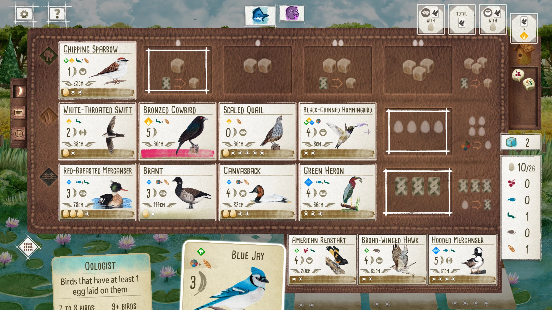 - Balance bird draws – some birds are more powerful but harder to play, while others fill hands easily. Match your playstyle.
